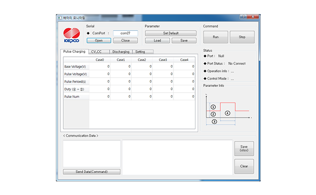 The waste battery monitoring software is used to control RS-485Modbus and export experimental data to an Excel file.